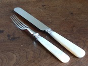 【1900s】ペアセット イギリス 白蝶貝 テーブルナイフ&フォークセット