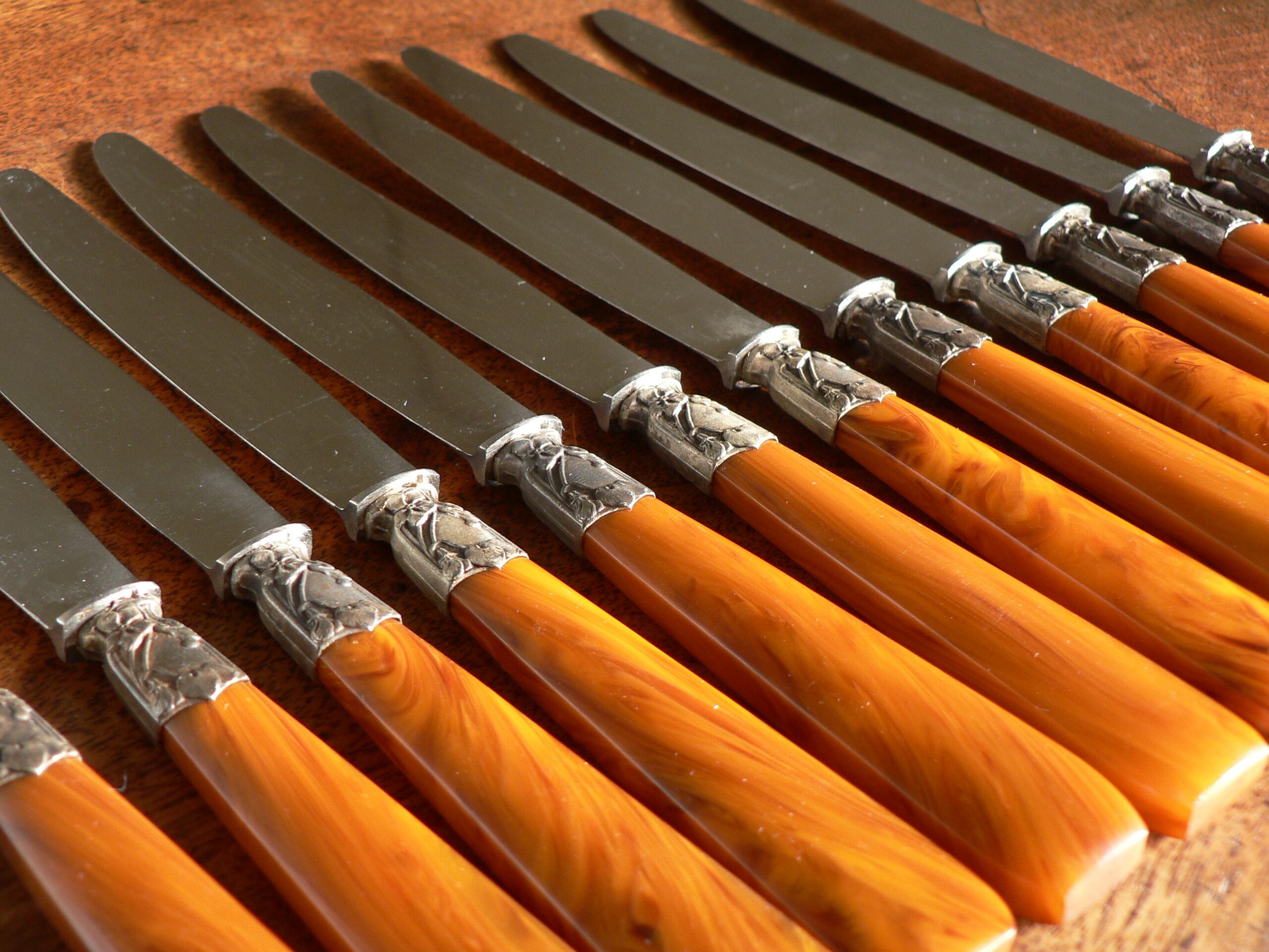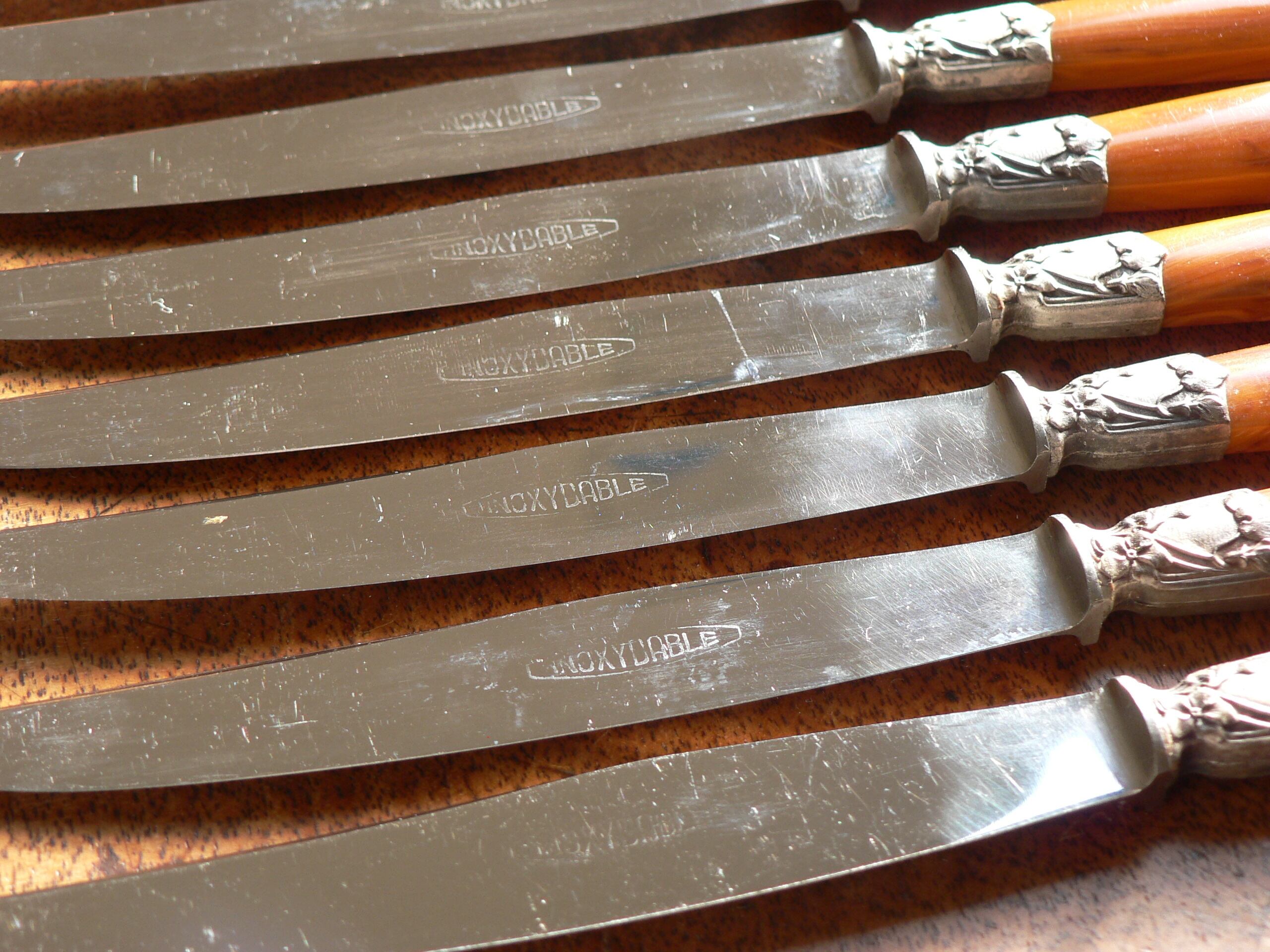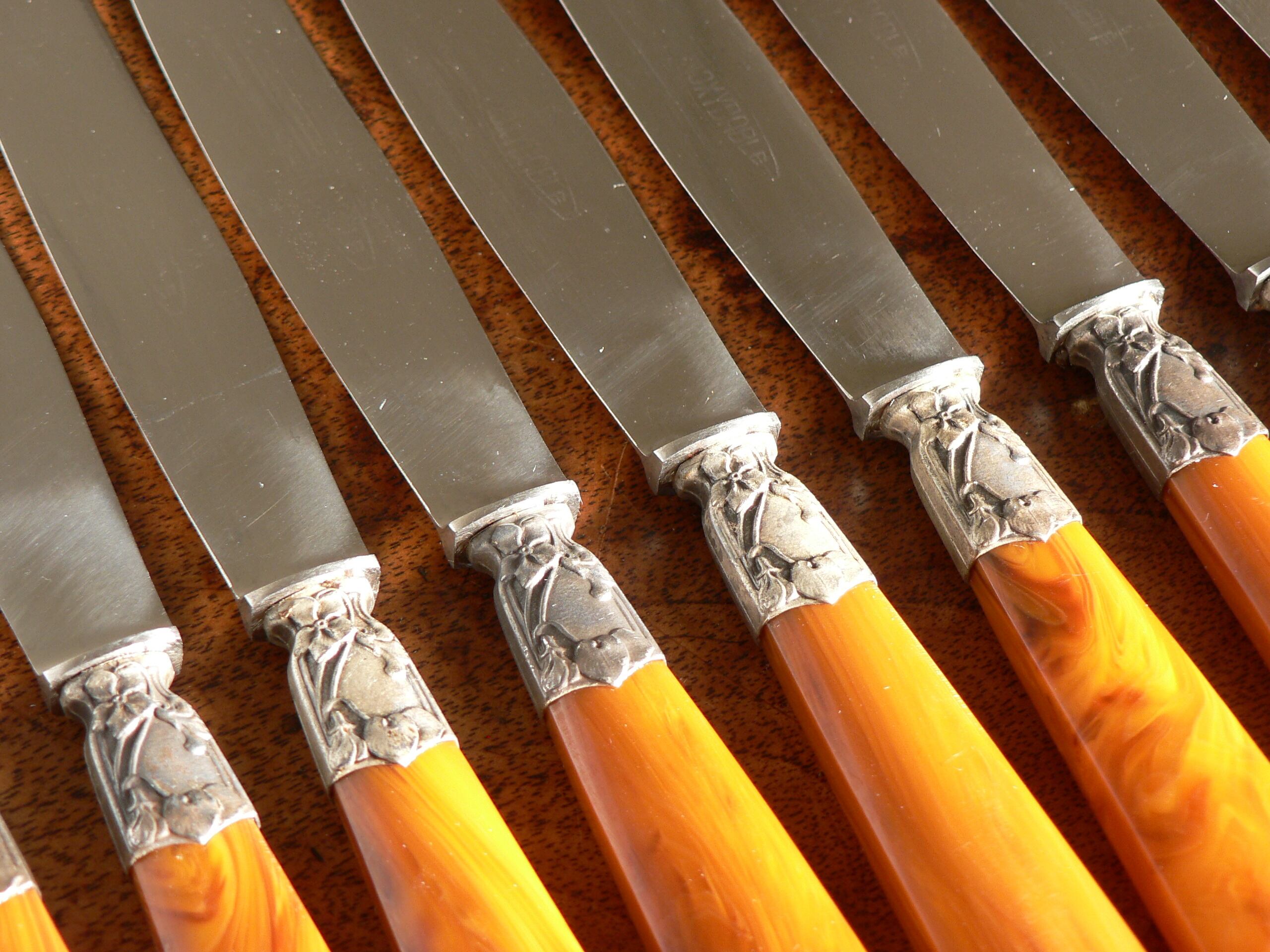 持ち手の柄がひとつひとつ違います。海外から届いたヴィンテージテーブルナイフ。優しい色合いと扱いやすいステンレス。