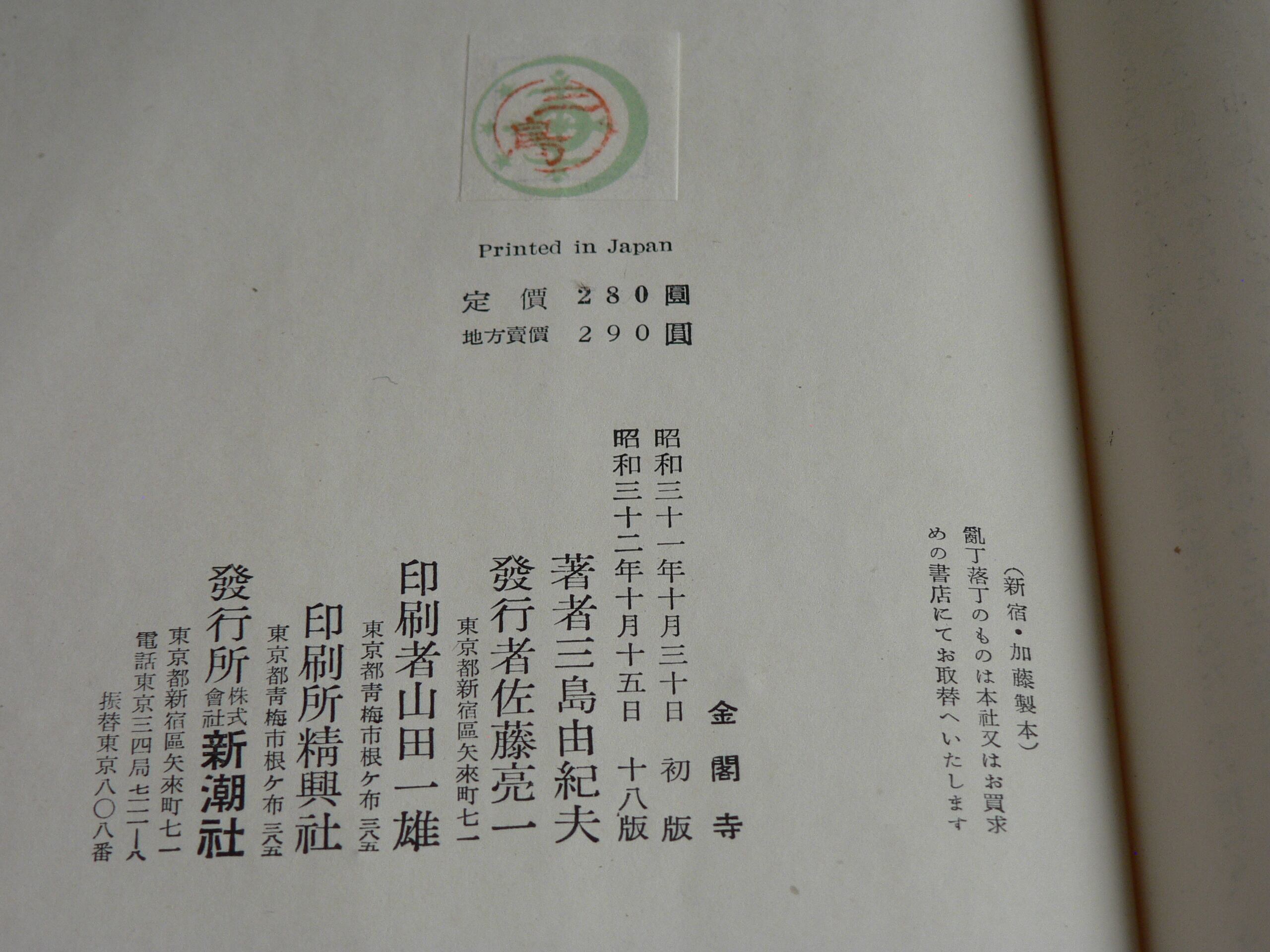 【1956】金閣寺 三島由紀夫 十八版 美品